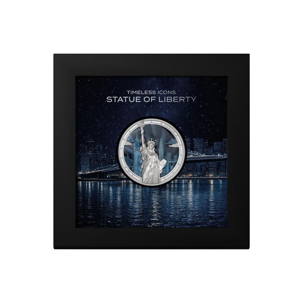 The coin design fully reflects the significance of this icon. Thanks to the smartminting® technique used on the coin, the Statue of Liberty is literally enthroned. The combination of matte and polished surfaces, as well as the fact that the statue protrudes into the edge of the coin in several places, creates a very special effect.