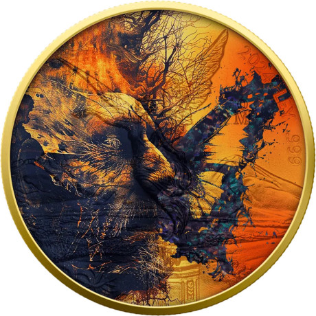 Libertads klassiska design, präglad från 1 troy ounce av 99,9% rent silver, har förbättrats med rik guldplätering på båda sidor. Dessutom har framsidan av myntet livfulla färger kombinerat med en komplex holografisk effekt som skapar en fängslande känsla av djup och rörelse. Som ett resultat av detta verkar myntet förändras och förvandlas när ljuset träffar det, vilket perfekt återspeglar temat "fjärilseffekten".