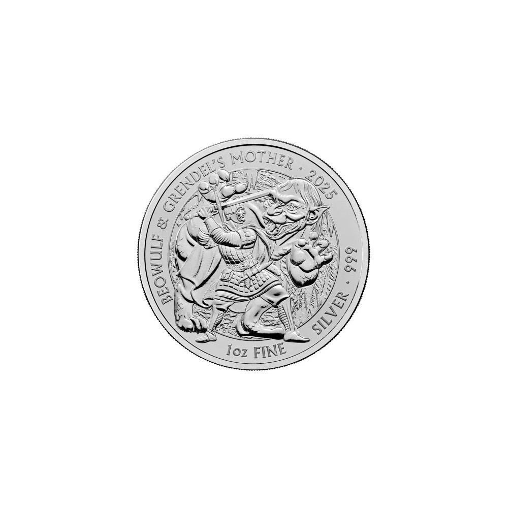 Gå in i en värld av mytiska hjältar och hårda strider. Det andra myntet i en tredelad samling inspirerad av den episka dikten "Beowulf" hyllar den legendariska karaktären från detta mästerverk av gammal engelsk litteratur. Präglat i det finaste 999 silver, så avbildar detta mynt den dramatiska striden mellan Beowulf och Grendels moder - en avbildning mästerligt designad av David Lawrence. Detta mynt är en sann pärla för både samlare och investerare.