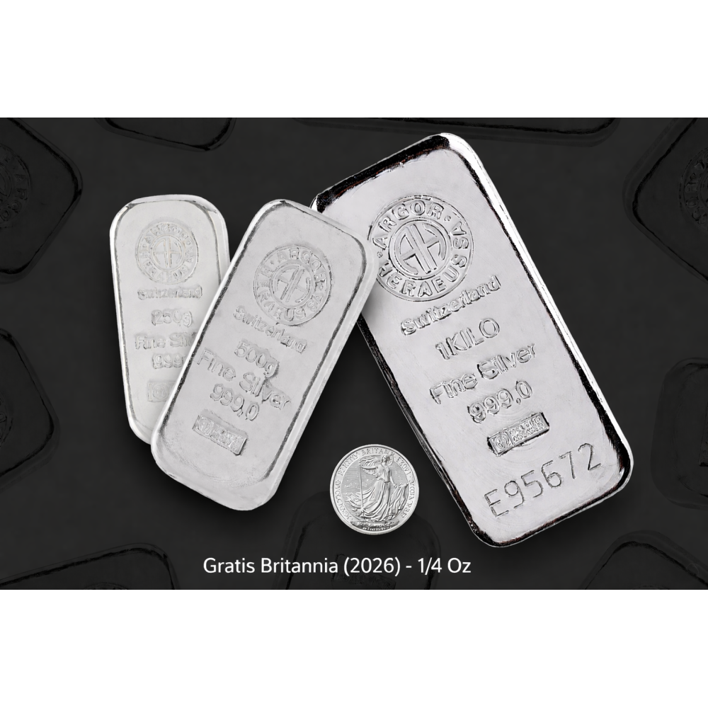 Silveruppsättning (1 KG + 500g + 250g Argor Heraeus) + gratis 1/4 Oz Britannia silvermynt